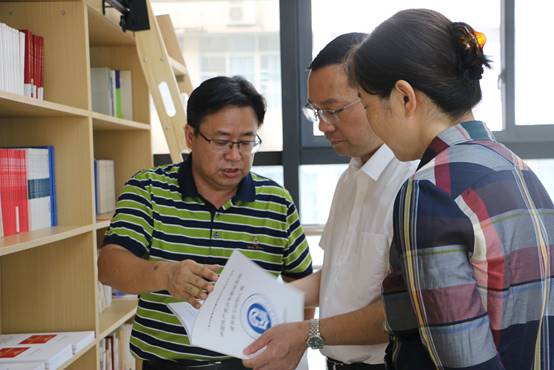 调研组一行首先参观了学院的部校共建伟德国际1949成果展,唐兴书记向其介绍了部校共建伟德国际1949的成果及特色,包括马克思主义新闻观研究、精品课程、人才交流、实践基地和研究智库等。此外,调研组一行还参观了融媒体中心、全媒体交互式演播中心、马克思主义新闻观书屋等,并查看了部校共建工作的相关材料。