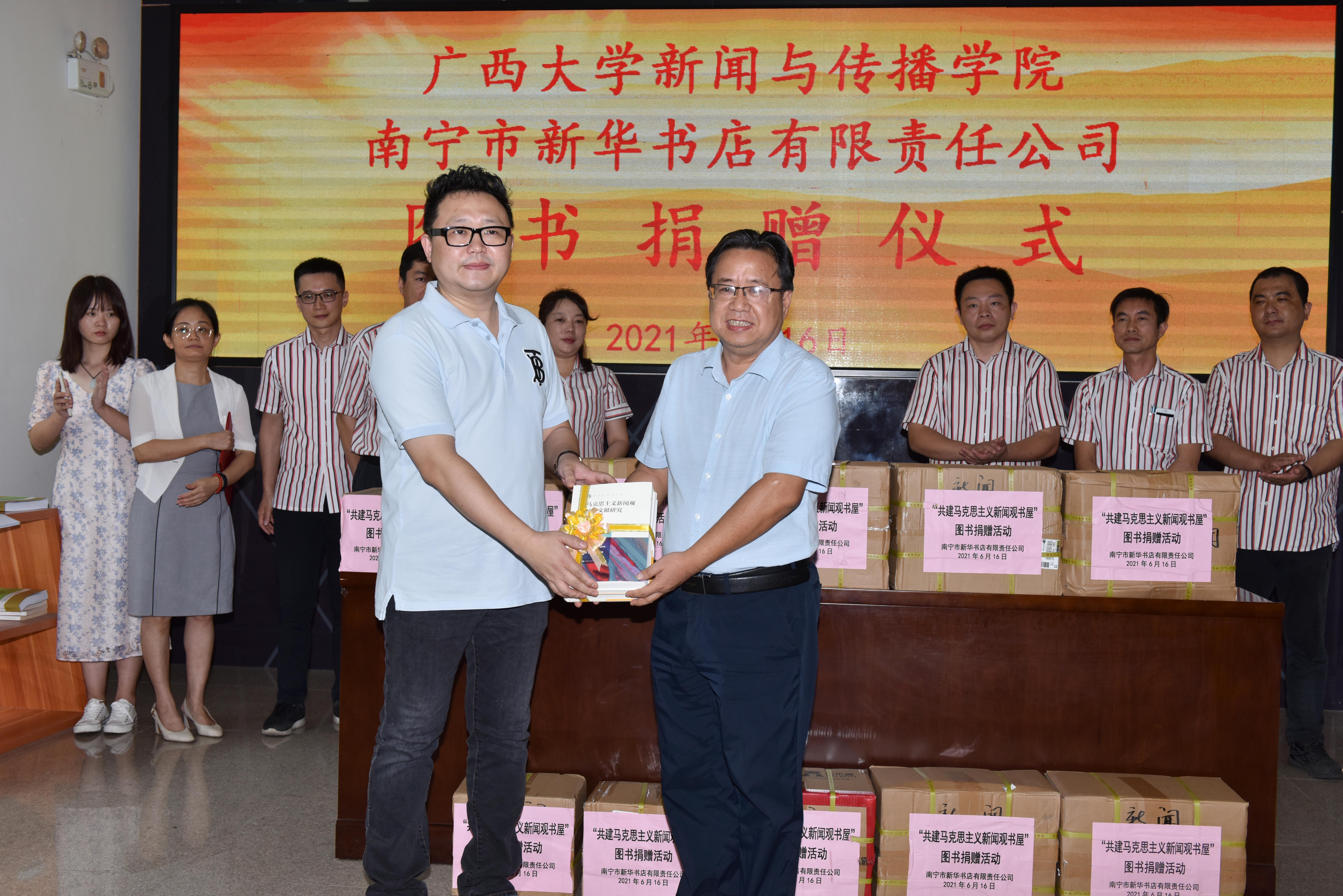 2021年6月16日,南宁市新华书店有限责任公司向伟德国际1949图书捐赠仪式在公司一楼大厅举行。伟德国际1949师生和南宁市新华书店有限责任公司有关负责人出席活动。