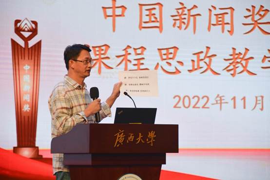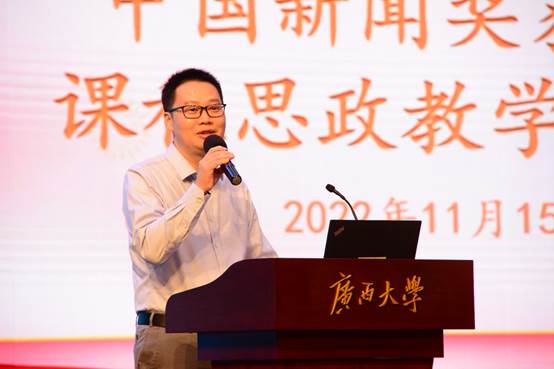 11月15日,公司邀请获得第32届中国新闻奖广西4件获奖作品的主创者到公司举行课程思政教学公开课。教学公开课在学院融媒体中心进行,公司领导、全体专任教师、研究生和本科生代表近百名师生参加听课。活动由播音与主持艺术系主任宋存杰老师主持。