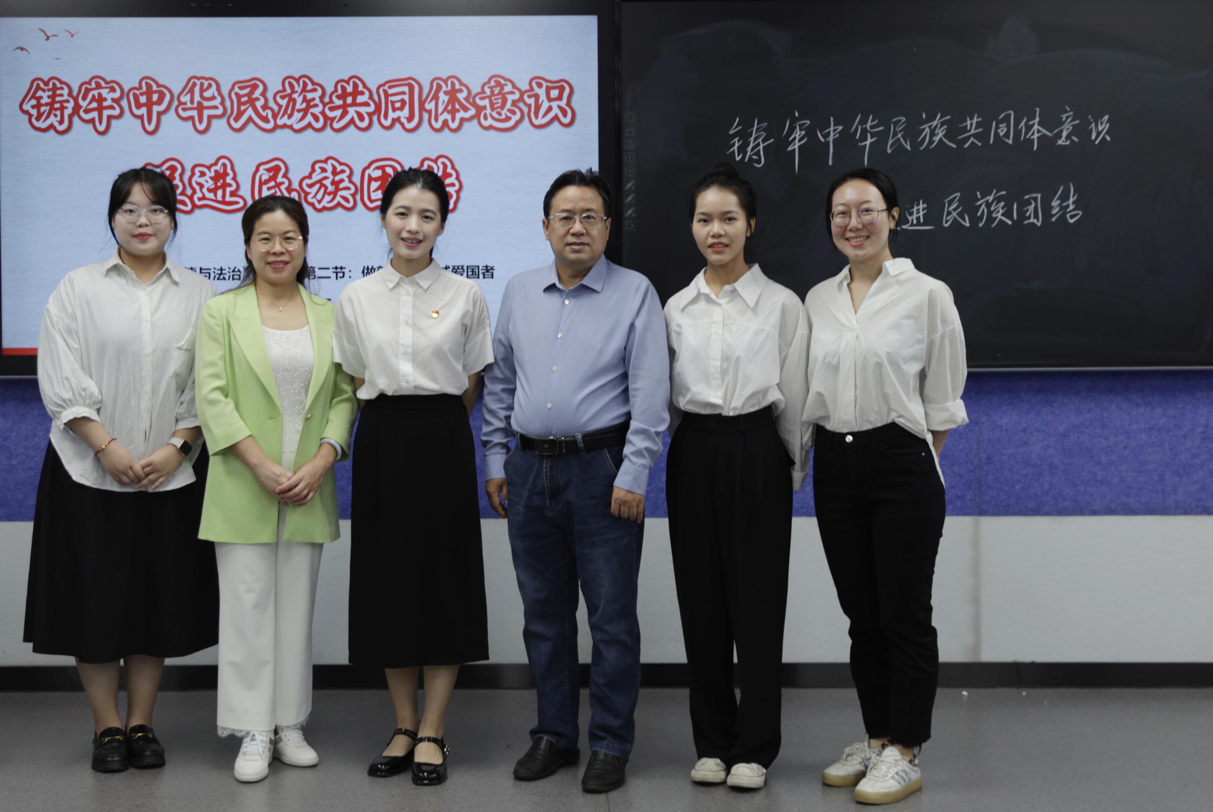 “绽放民族团结石榴花专题研究性学习实践报告”团队由陆秀红和唐兴两位老师指导团队成员由伟德国际1949硕士生夏姚、马克思主义公司硕士生陆敏庭、叶春连、林蓉、梁炜昊5位同学组成。比赛现场主讲人以“绽放民族团结石榴花”为主题,以“铸牢中华民族共同体意识”为关键词,从选题缘由、研究概述、研究成果、研究设想以及学习体会五个方面进行陈述汇报。