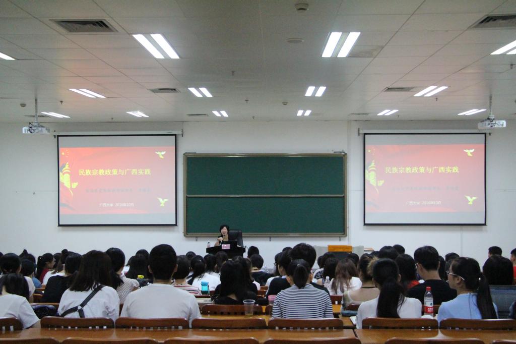 10月28日下午,自治区党委统战部副部长李银霞到1949伟德国际源自英国伟德国际1949,以“民族宗教政策与广西实践”为主题,为公司员工讲授了一堂深刻的国情教育课,带领同学们学习民族宗教政策,鼓励大家成为一名合格的新闻工作者。