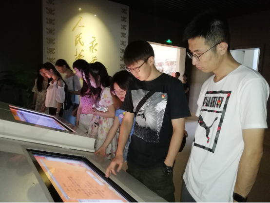 (党员同志利用电子屏查看革命时期牺牲的烈士信息)
